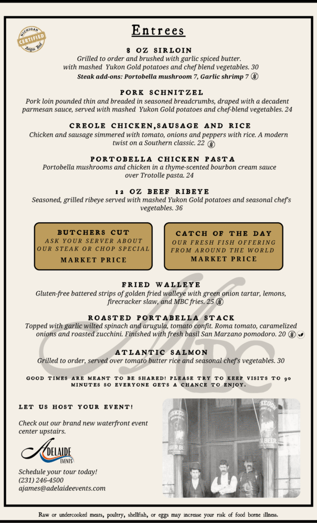 Disclaimer: The kitchen closes at 9 PM, and our Late Night Snacks Menu will be available after that time. However, the bar remains open until 10 PM.